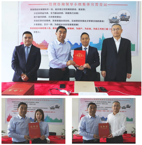 項目啟動會上,四啟環保的領導發言,表示對于此次改善給予高度期望,四啟環保的目標是打造具有核心競爭力的高節能泥漿泵綜合解決方案服務能力,成為中國高節能泥漿泵綜合解決方案服務平臺,希望通過此次改善能夠助力四啟環保更上一層樓,實現三年內營收超過5億元,3-5年內實現IPO。同時啟動會上,揚州四啟環保設備有限公司的領導給遠大方略項目組頒發授權書,授權遠大方略正式啟動四啟環保《經營管理系統提升》咨詢項目。