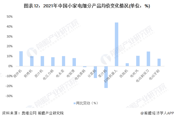 2021年,中國廚房小家電產品均價整體同比有所上升,但具體而言,不同細分產品趨勢各有差異。攪拌機、煎烤機、原汁機、電壓力鍋、電水壺、電飯煲產品均價同比上漲約10%左右,尤其攪拌機上漲幅度約為15%,多數產品漲幅較大主要系因為2021年鋁、不銹鋼、銅等大宗原材料價格大幅快速上漲,成本上升逐漸傳導至終端價格所致。部分細分產品如豆漿機、果汁機價格有所回落,主要系細分市場競爭加劇且消費者對于非必須產品保持理性的購買心理。