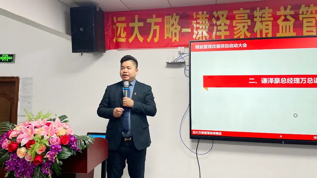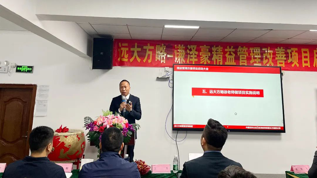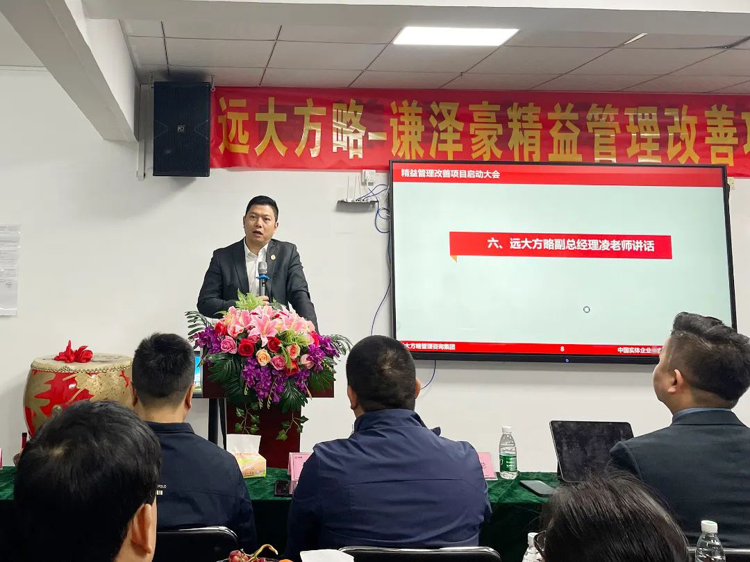 會議上,項目組老師首先向謙澤豪管理團隊對遠大方略的信任表示感謝,企業經營的本質是以客戶為中心,圍繞客戶價值去建團隊、建流程、搭體系,為客戶創造更大價值才能留住客戶,這也是此次企業開啟項目的核心。遠大方略項目總監強調了此次項目的兩個重要思想,一是全員參與,所有部門所有員工都要參與此次改善;第二個就是要持續改善,從量變到質變,它有一個過程,需要我們持續做下去才會發生質的改變。