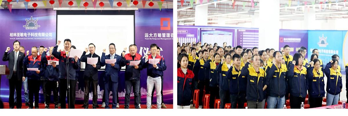 桂林至敏電子科技有限公司(以下簡稱“至敏電子”)攜手遠(yuǎn)大方略落地《精益生產(chǎn)》咨詢項目,一期變革啟動儀式在至敏電子公司隆重召開。