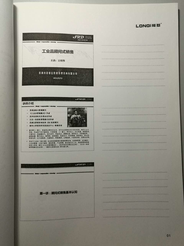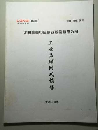 2013年10月7日,應沈陽隆基電磁科技股份有限公司領導邀請,為隆基電磁培訓《工業品顧問式銷售》,與隆基營銷團隊100余人交流分享了工業品銷售相關技能。