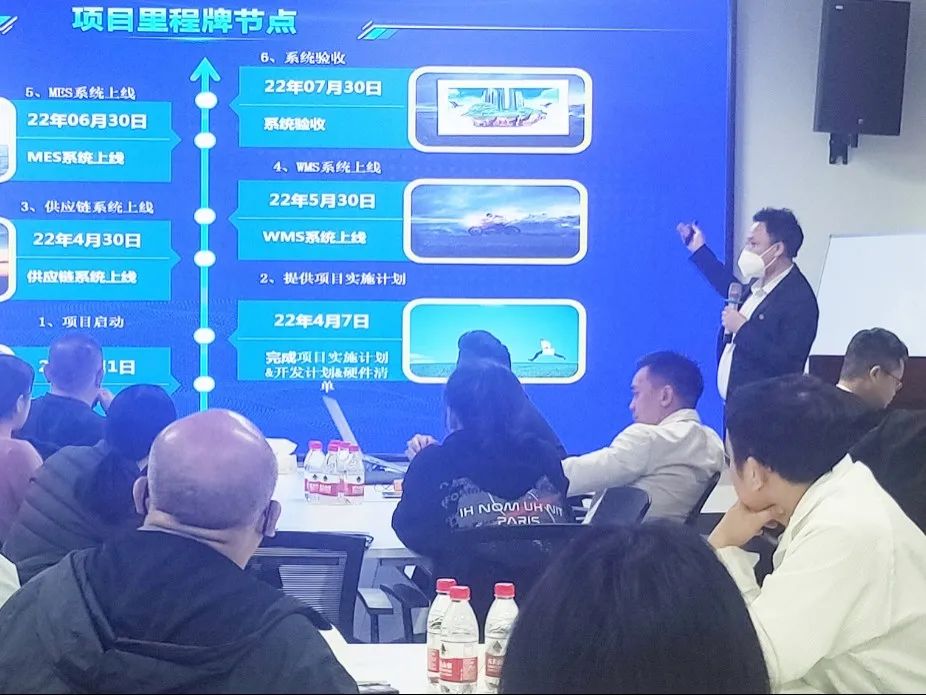 會上,項目老師結合同創依諾發展實際,詳細講解了項目計劃實施步驟。表示,在項目啟動后,各模塊項目老師會按照時間節點先后落地:供應鏈管理系統、WMS系統、MES系統,并在企業內部培養各系統管理人才,讓改善工具能夠真正落地產生價值,為公司未來的發展儲備人才骨干。