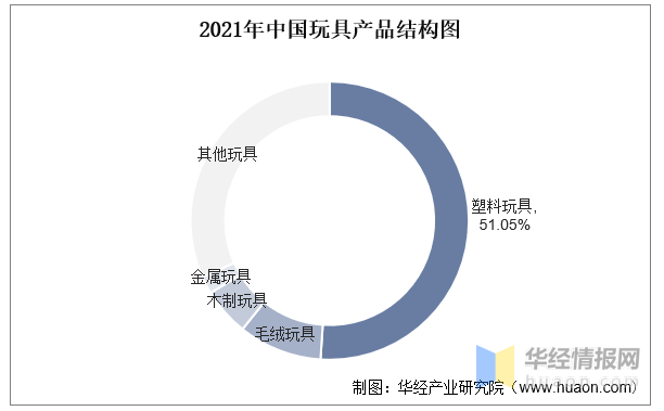 我國是全球最大的玩具制造國,在世界玩具市場(chǎng)上占有舉足輕重的地位。從材質(zhì)上看,塑料玩具是我國玩具市場(chǎng)第一大細(xì)分品類,2021年塑料玩具的市場(chǎng)份額約為51.05%。