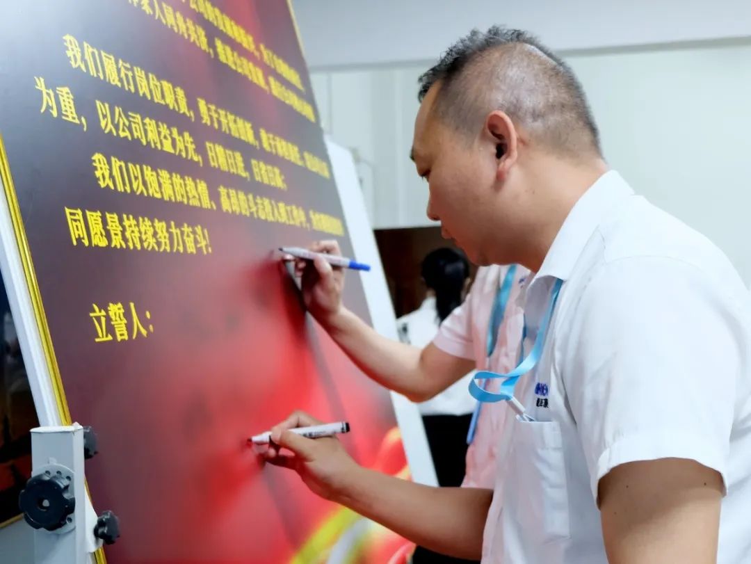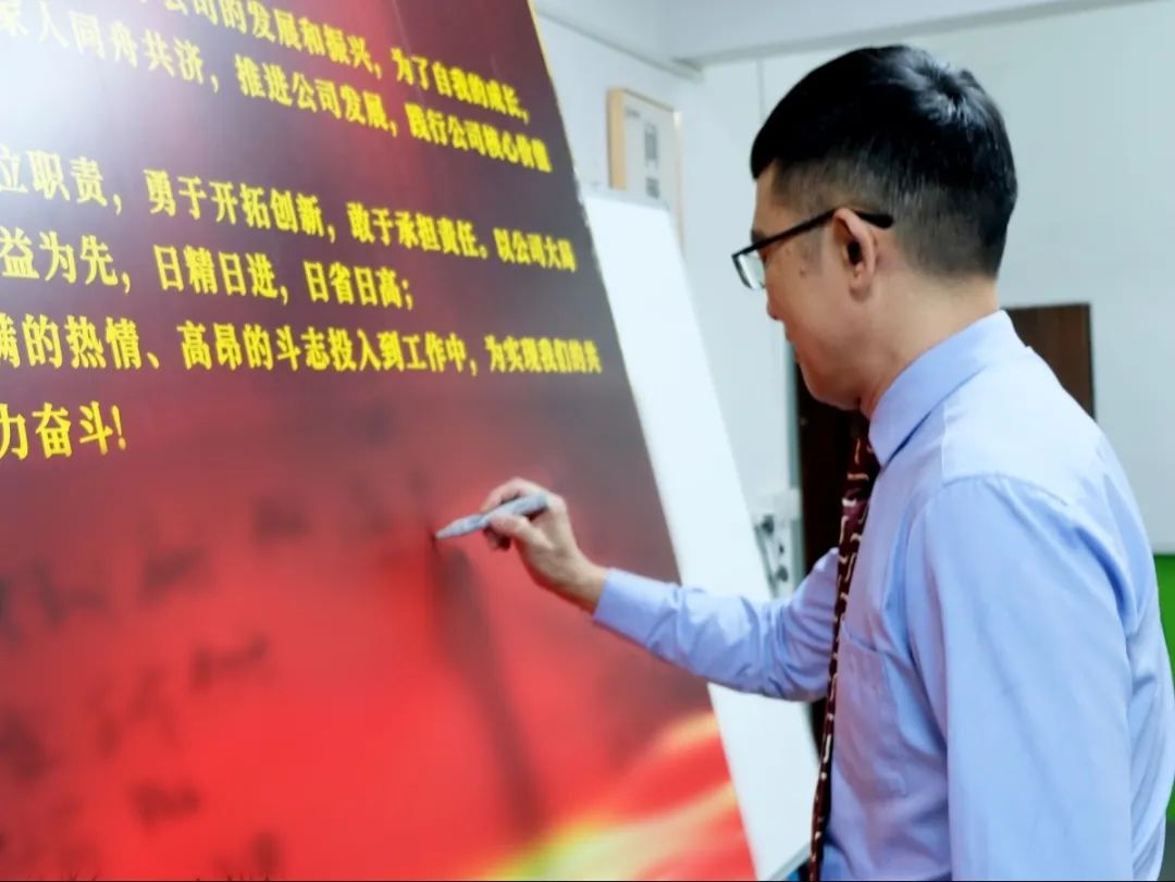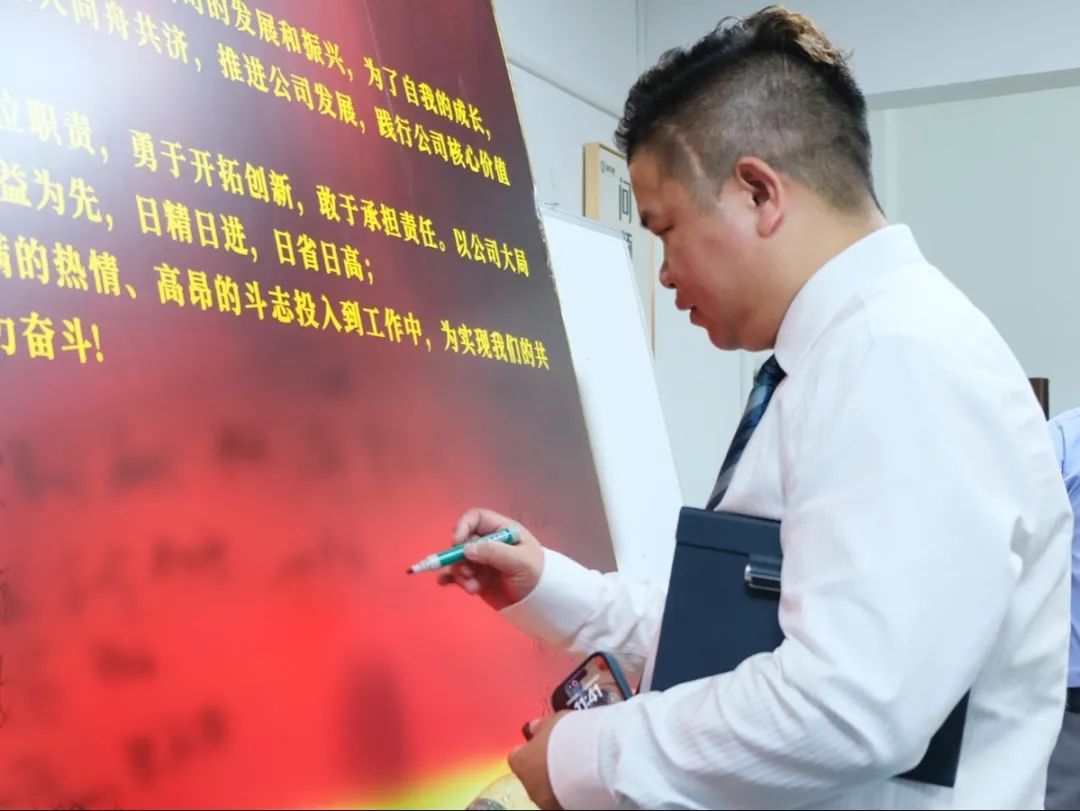 會上,萬總為項目老師頒發了授權書和聘書,帶領項目關鍵人員在誓詞上簽字并集體宣誓,鼓勵大家和公司共同成長進步。