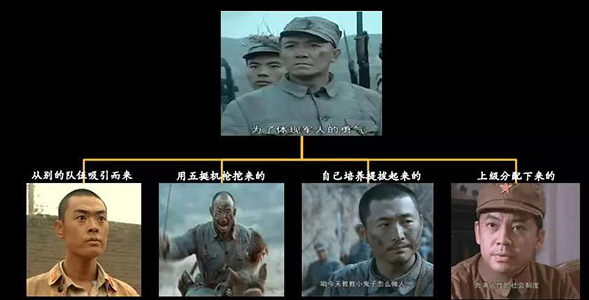 案例:李云龍如何構建核心團隊(魏和尚:解救后吸引而來;孫連長:用五挺重機槍從別的隊伍挖過來;張營長:自己培養提拔起來,是打出來的;趙政委:上級委派而來。